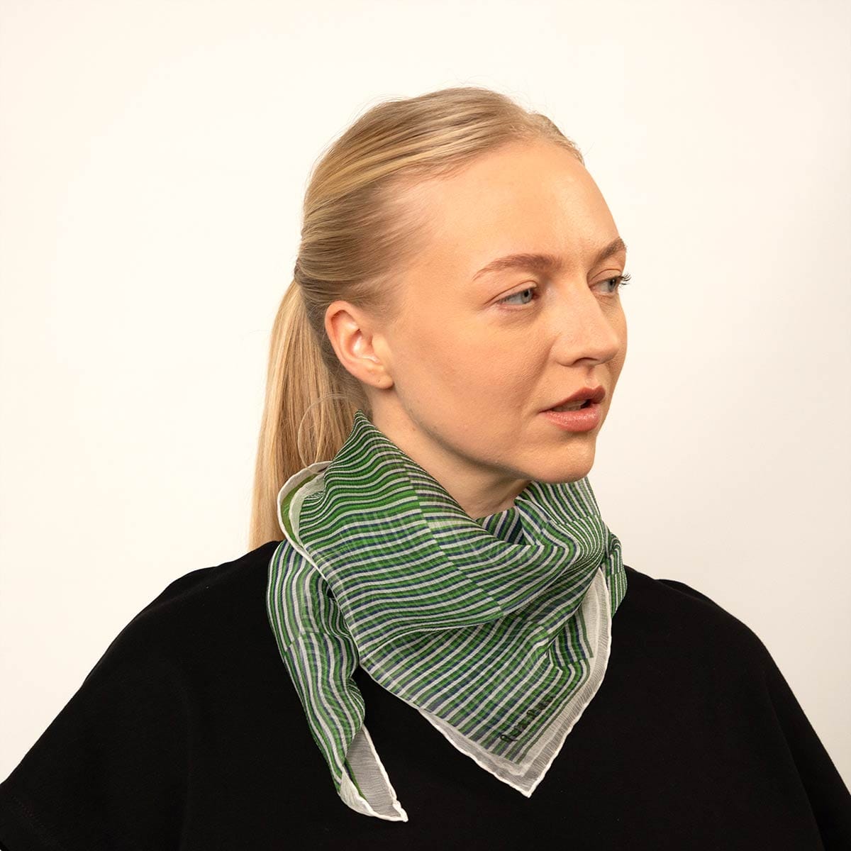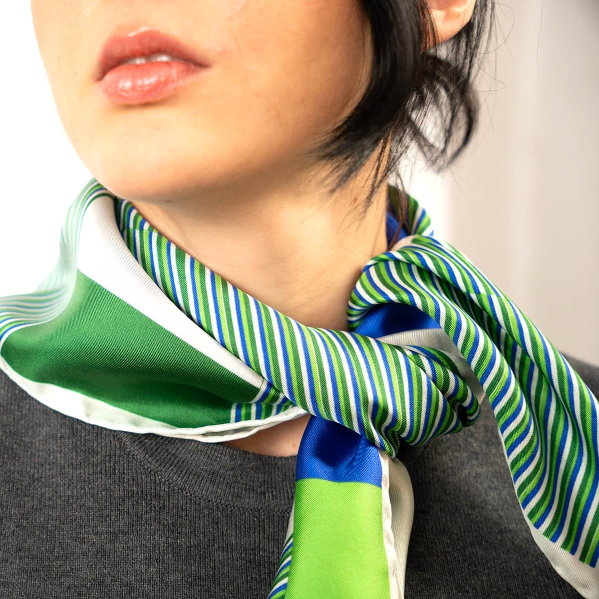 Available in silk twill or silk chiffon. Two sizes available. Double-sided finish. Hand-rolled hem. Made in Italy and Spain. Limited production & careful quality control.