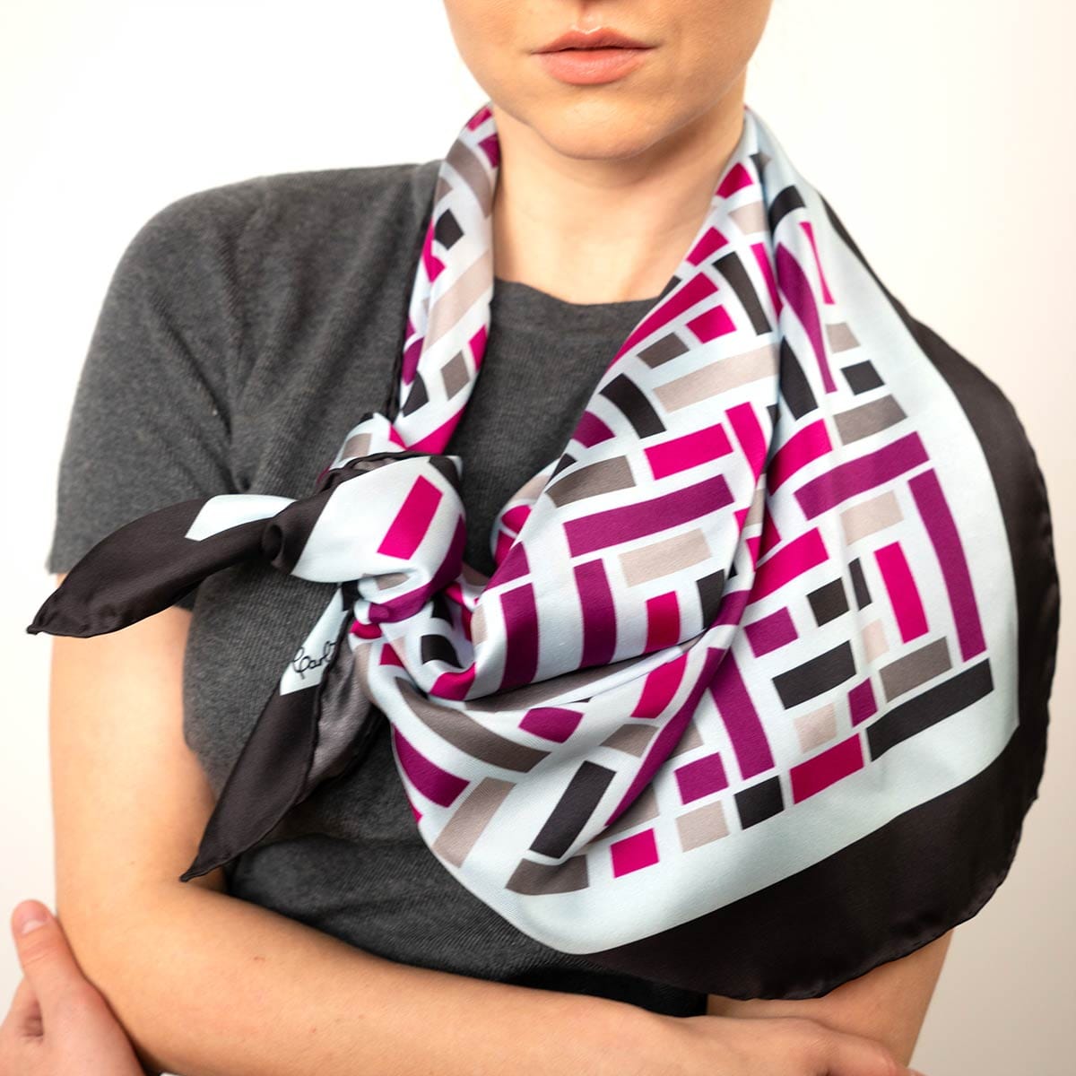 Available in silk twill . Two sizes. Double-sided finish. Hand-rolled hem. Made in Italy. Limited production & careful quality control.